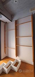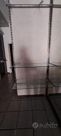 Si vendono tre scaffalature utilizzate per un negozio di abbigliamento, ancora in ottimo stato. Le misure di una scaffalatura sono: 3,40 m di larghezza e 2,55 m di altezza, 42 cm di profondità; le altre due hanno larghezza 3,78 m; altezza 2,55 m e profondità 42 cm. Le mensole sono regolabili e posizionabili come si desidera, in bianco e grigio, legno e truciolato. Disponibile anche un bancone in truciolato, vetro e pannelli laminati e allestimento vetrina in legno. Tutta la struttura è molto versatile.