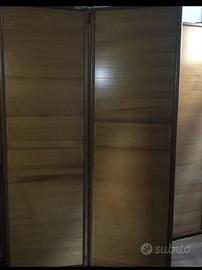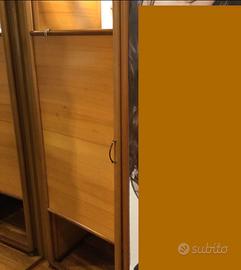 Vendo arredamento negozio usato in legno iroko componibile. Tre camerini, due banconi vendita. Composto da pannelli, da fissare al muro e al pavimento con relative staffe di ancoraggio. Appenderie in metallo molto resistenti e pianetti in legno posizionabili a piacere lungo tutta l’altezza del pannello. Colore marrone chiaro caldo con profili più scuri. Banconi molto ampi con ripiano, dello stesso legno, con appoggiato sopra lasta di vetro ( rimovibile). Mq circa 60. Prezzo 250.