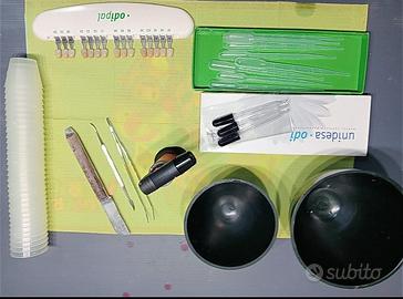 micromotore, ideale per studio,e laboratorio. scala colori nuova, conta gocce, nuovi, e scodella gesso, scodella alginato. Bunsen, pinzetta. Possibilità di spedizione