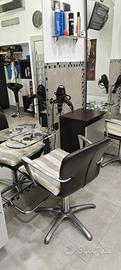 arredamento parrucchiere e barbiere: 3 poltrone femminile con pompa idraulica, 2 divani due posti color arancio/marrone