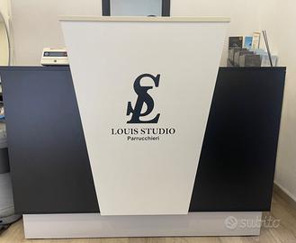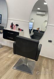 arredamento parrucchiere in ottime condizioni: 4 specchi fatti su misure, 4 poltrone, 4 poggiapiedi, cassa con logo rimovibile