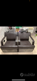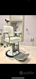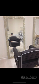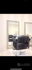 Arredamento parrucchiere delle migliori marche ,due lavatesta elettrici con massaggio linfodrenante,due poltrone in ecopelle testa di moro ,due specchi glitter oro/platino, due poggiapiedi