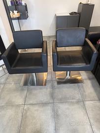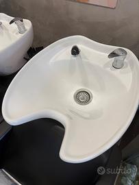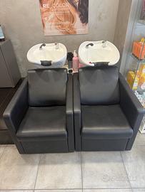 Il Tuo Pacchetto Completo Include: • 2x Postazioni Taglio/Styling Girevoli: Sedute generosamente imbottite in ecopelle nera, con braccioli coordinati, che offrono il massimo comfort al cliente durante i trattamenti più lunghi. Dotate di una robusta ed elegante base quadrata in acciaio cromato lucido, sono regolabili in altezza per un'ergonomia perfetta dello stilista. Misure 62 x 55 x 80-91 (h) • 2x Postazioni Lavaggio Complete (Unità Retro-lavaggio): Due postazioni ergonomiche e confortevoli, perfettamente integrate con lavandini in ceramica bianca dotati di miscelatore e doccetta. Il design offre un'ampia area di lavaggio e un comfort superiore per il cliente. Misure : Larghezza 63cm profondità 100cm • 2x Poggiapiedi in Acciaio Cromato: Poggiapiedi autoportanti dal design minimalista, realizzati in solido acciaio cromato lucido. Forniscono un supporto essenziale e una postura confortevole per il cliente durante tutte le fasi del servizio. • 2x Specchi a Figura Intera con Cornice Coordinata: Eleganti specchi con una moderna cornice nera opaca a angoli smussati. Includono una mensolina integrata (metallo/vetro) per appoggiare comodamente strumenti, spazzole o il caffè del cliente. L 75cm x H 210cm (185 solo specchio) x P 16 cm Vendita in blocco 2800€ Trattabili Telefono 3476691442