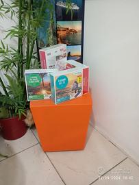 vendo arredamento per agenzia di viaggi completa di 2 scrivanie due sedie mobili 2 sedie arancioni e due verdi. Porta cataloghi e porta offerte.