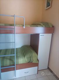 Si vendono due stanzette con letti singoli a castello e cassettone sottostante con terza rete estraibile. Le stanzette sono dotate di armadio , cassetti, ripiani e scaletta come in foto (materassi non inclusi).