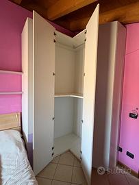 armadio H 260 cm, lunghezza 145 cm per lato, ante 45 cm, anta finale dx angolata a 45°;