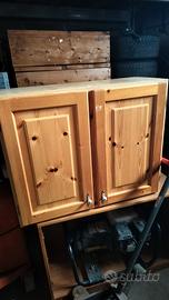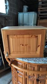 vendo arredamento per cucina che comprende un bancone da bar in legno con piano di appoggio in marmo, dei pensili da cucina dotati anche di scola piatti