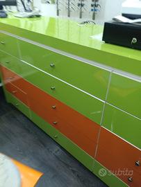 Vendesi arredamento artigianale completo di banco, e cassettiere, usato per negozio di ottica, ma facilmente adattabile per qualsiasi attività.
