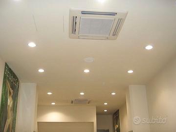 Arredo completo per negozio, così composto: - bancone - mobile centrale e scaffalature - speciali lampade da controsoffitto