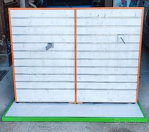 arredamento per negozio completo di gondole, molte pareti attrezzate, con molti accessori, ripiani, ecc e un piccolo bancone con cassetto e vetro sopra.