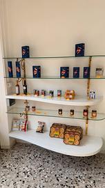 Buongiorno, vendo nuovo arredamento per negozio, bancone completo di ripiani e vetrine con piano certificazione alimenti, arredamento completo per negozio di mensole di vetro e legno bianco , trattabili