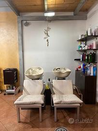 Vendo arredamento da parrucchiera composto da: 2 lavatesta, 4 postazioni con specchi , mobile cassa con vetro crackle, poltrone con casco vintage anni 60. Prezzo da concordare in base a ciò che si prende. Si accettano proposte. Contattare telefonicamente 3497114684