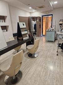 6 poltrone ,3 lavatesta,1 divano ,6 postazioni e cassa