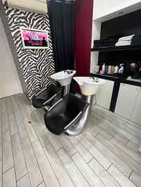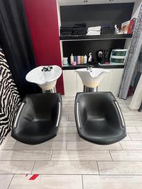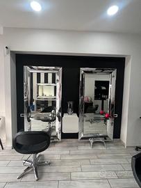 Arredamento completo di specchi, quattro poltrone, due lavatesta.