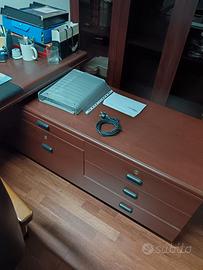 Vendesi arredamento per ufficio direzionale composto da: Una scrivania 200cm x 100cm Un'appendice 185cm x 50cm Un armadietto a tre ante 185cm x 145cm x 50cm Due poltroncine ospiti Una poltrona direzionale