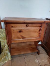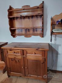 vendo arredo rustico: madia con rialzo dispensa attaccapanni piccolo baule divisorio con porta piante divano e poltrone Invio misure a richiesta . Vendo anche singoli pezzi.