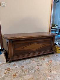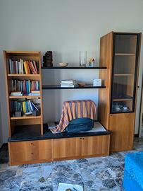 vendo i seguenti mobili Mobile marrone chiaro, disponibili 2 pezzi, dimensioni: larghezza 250cm altezza 200cm profondità 38-52cm vano centrale 90cmx71cm Prezzo 220 euro cad. VENDUTO ----------------------------------------- Mobile sala marrone scuro, dimensioni: larghezza 208cm altezza 200cm profondità 60cm vano centrale 107cmx69cm Prezzo 220 euro cad. ----------------------------------;----------- Tavolo marrone chiaro con 4 sedie, dimensioni: 90cm x 90cm, allungabile a 180 cm, altezza piano 79cm. Prezzo tavolo e sedie 100 euro VENDUTO --------------------------------------------- Divano colore blu ad angolo compreso di pouf , dimensioni: 283cm x 150cm , profondità seduta 58cm altezza 48cm. Dimensioni pouf 56cm x 56cm Dimensioni pouf cilindro diametro 76cm Prezzo divano 220 euro VENDUTO ---------------------------------------- Panca in legno, dimensioni 118cmx43cm altezza 50 cm. Prezzo panca 50 euro.
