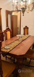 Vendo arredo per sala da pranzo, in legno massiccio. Composto da : tavolo, sedie, vetrinetta, specchio e mobile. Ritiro a carico dell'acquirente.