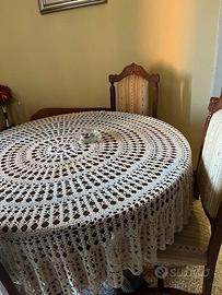 Tavolo tondo diam. 116 cm allungabile - 6 sedie imbottite - lampadario 6 luci.