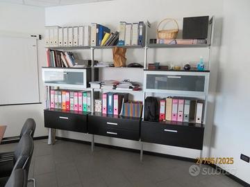 arredamento per sala riunioni composto da tavolo con piano in mogano 240x120cm, 8 sedie in similpelle, una libreria ed un mobile basso. in ottime condizioni.