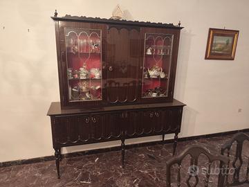 Tavolo in marmo, vetrina con specchio e vetrina per liquori