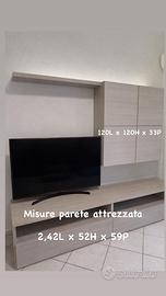 Parete attrezzata ingressino in ferro beige con specchio abbinato e tavolino da salotto