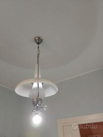 divano 3 posti, lampadario in vetro bianco temperato a 2 luci,2 plafoniere grandi in vetro a 4 luci