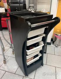 Lavatesta doppio con seduta in ecopelle 3 Carrelli in legno con 5 cassetti 3 Sedie in ecopelle, 1 con pompa regolabile e 2 con seduta standard