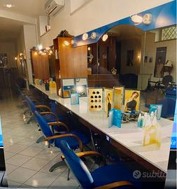 vendo arredamento salone parrucchiere in legno buono stato, composto da 10 sedie , due postazioni, una lunga e una doppia, un mobile per riporre i prodotti, due divisori in legno composti da pennelli