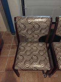 nr. 4 Sedie in legno di noce con seduta in tessuto (imbottitura nuova ancora protetta da cellofan). MAI UTILIZZATE