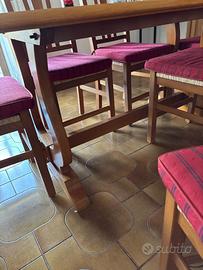 - Sempre in rovere chiaro e abbinati alla credenza: tavolo (capienza 8 persone) con 6 sedie con seduta in paglia complete di cuscino rimovibile e lavabile;