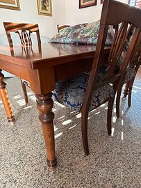 •Tavolo in legno allungabile per 6 persone, completo di 6 sedie con seduta imbottita – Elegante e funzionale, perfetto per cene conviviali.