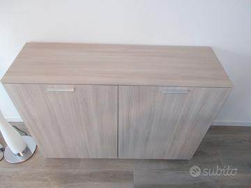 -Madia a due ante con una mensola interna, dimensioni: lunghezza 122,5 cm; profondità 38,5 cm; altezza 88 cm; prezzo 150,00€