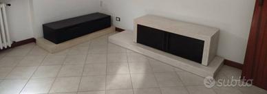 Mobile soggiorno in Bamboo composto da una pedana beige 141x50.5x10h una pedana beige 181x 50.5x10h 2 cassetti marroni 60x40x25h una cassettiera marrone e beige 120x40x40h 3 pensili beige e 2 marroni 70x35x31. Ritiro in zona, trasporto a carico dell acquirente