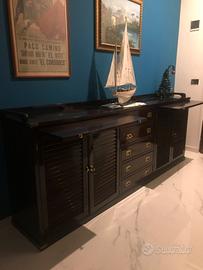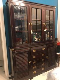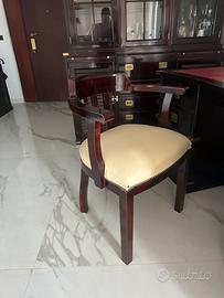 Servante, cristalliera, camera a ponte, scrivania e poltrona in legno massello di mogano, prezzo da concordare