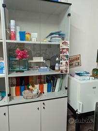 VENDESI ARREDAMENTO PER STUDIO MEDICO/CENTRO ESTETICO/UFFICIO COSI' COMPOSTO: -BANCO RECEPTION COMPOSTO DA DUE SCRIVANIE DI DIVERSA ALTEZZA, PANNELLO PARAFIATO IN PLEXIGLASS/SEDIA OPERATORE -SCRIVANIA CON CASSETTIERA INTEGRATA/PANNELLO PARAFIATO IN CARTONE IMPERMEABILE/SEDIA OPERATORE/DUE SEDIE PUBBLICO, PICCOLI MOBILETTI PORTA STAMPANTI CON RUOTE DI COLORE NERO -LIBRERIA A DUE ANTE SOPRA-SOTTO IN VETRO, TERZO ELEMENTO OPZIONALE CHE PRESENTA UN LIEVE DIFETTO NELLA PARTE SUPERIORE DOVUTO AD INFILTRAZIONE D'ACQUA -VETRINA FARMACI IN ACCIAIO E VETRO -LETTINO VISITE ACQUISTATO DA MENO DI UN ANNO IN ACCIAIO VERNICIATO DI COLORE BIANCO CON PORTA-ROTOLO INTEGRATO PER LENZUOLINO MEDICO LO SMONTAGGIO E IL TRASPORTO SONO A CARICO DELL'ACQUIRENTE, PREZZO DEL PACCHETTO COMPLETO POCO TRATTABILE,POSSIBILITA' DI ACQUISTO DI PEZZI SINGOLI,UBICAZIONE MERCE IN NAPOLI ZONA OSPEDALIERA/CAMALDOLI