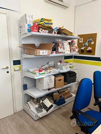 Scaffale 210×220×50 scrivania doppia con bancone armadietto basso a 2 ante cassettiera 3 cassetti 2 poltrone bilancia pesa pacchi