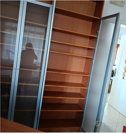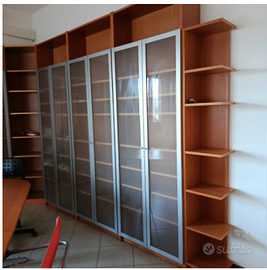 Grande libreria IKEA impiallacciata Ciliegio con ante in vetro e Top e molti scaffali interni. È composta da 5 librerie di cm 80, elemento angolare con Top e due elementi laterali a rifinitura. Si presenta molto bene Misure cm 325 la parte con 3 librerie, finale e angolare - cm 235 parte con 2 librerie, finale e angolare - altezza cm 237 - profondità cm 30. La libreria può essere montata anche in maniera diversa. Ritiro a carico del compratore Se interessati ho anche un grande tavolo da riunioni nello stesso legno losi intravede nella prima foto