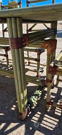 Per smaltimento magazzini cedo Completo tavolo e sedie in Rattan originale di altri tempi anni 80/90 vintage per veri intenditori con intrecci in cuoio tutto come da foto n°6 sedie colore verde sfumato. per info non esitate a contattarmi