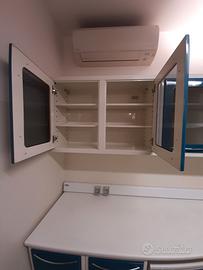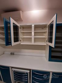 Vendo arredamento tecnico professionale di altissima qualità in condizioni pari al nuovo. Tenuto in maniera maniacale non presenta difetti di sorta. Trattasi di mobilio in lamiera smaltata e vetri atto quindi ad essere lavato e disinfettato. Prodotto da ditta leader nel settore delle forniture per ambulatori, studi medici, odontoiatrici, ospedali, cliniche.. E' stato presente nella sala operatoria del mio ambulatorio che adesso ho chiuso per passaggio ad altra attività. Garantisco quindi in prima persona le condizioni impeccabili visto l'utilizzo. Come si può vedere da foto, è presente un mobiletto a scomparsa