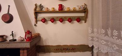 - credenza (il mobile a terra110×46; altezza 100 cm; la piattaia abbinata altezza 90×larghezza 95; profondita della prima mensola 20,5cm, le altre due sono profonde 12,5)