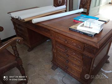 scrivania 4 sedie e mobile credenza in legno ottime condizioni
