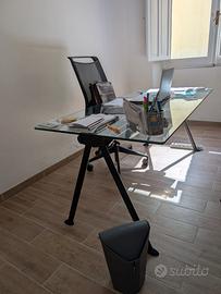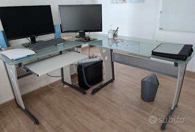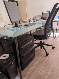Armadio grigio metallico con ante scorrevoli in vetro. Perfetto per ufficio, archivio documenti o libreria. Struttura solida e capiente. 45x120x205 cm ( PxLxH) €180 Tavolo ampio con piano effetto legno e struttura solida. Perfetto come scrivania o tavolo da lavoro. Presente foro passacavi. 170x80x80 cm (LxPxH) €50 Scrivania ufficio in vetro (angolare) con piano in vetro temperato e struttura robusta. Dotata di ripiano estraibile per tastiera. Ideale per postazione PC. Buone condizioni. 80-55-80 x 55x756 cm (LxPxH) €120 N. 3 sedia da ufficio ergonomica con schienale in rete traspirante e supporto lombare. Regolabile in altezza, con ruote. Buone condizioni. € 80 cada una Scrivania moderna con piano in vetro e struttura metallica. Design semplice e funzionale, adatta per studio o ufficio. 170x80x80 (LxPxH) € 130 Scrivania moderna con piano in vetro satinato e struttura metallica. 200x90x80 (LxPxH) €480 N3 cassettiere € 40/cadauna 1.Cassettiera nera compatta da ufficio con più cassetti in acciaio 2. Cassettiera grigia compatta da ufficio con più cassetti in acciaio 3. Cassettiera grigia compatta da ufficio con più cassetti in legno Possibilità di trattare il prezzo per acquisto in blocco. Il prezzo non include consegna che dovrà essere organizzata con mezzi propri. Disponibilità a mandare ulteriori foto e video.