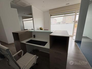Scrivania:2mx90x74 Mobile: 1.90x1.95x45 Reception: 2.50mx1mx75 Divano in pelle 3 posti Misure: lunghezza 1.70m, altezza 70 cm, profondità 55 cm Divano in pelle 2 posti 1.20mx70cmx55cm Poltrone e sedie comprese
