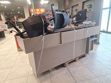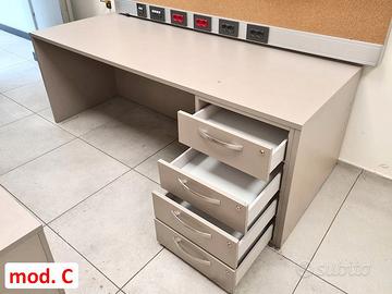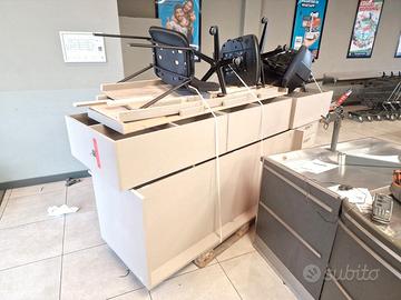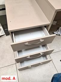 arredamento ufficio completo usato, si tratta di vari mobili per arredare un ufficio di lavoro. disponibilità: - mod. A scrivania doppia cassettiera con 4 cassetti ciascuna, uno dotato di serratura per chiusura con chiave dim. 260X75cm h73cm, h cassetti 8cm - 350,00€ iva esclusa - mod. B 3 armadietti da muro porta libri dim. 95X32cm h78cm - 100,00€ cad. - mod. C scrivania da ufficio completa di cassettiera con serratura di chiusura dim. 200X75cm h73cm, h cassetto 7cm - 250,00€ - mod. D 3 sedie con ruote da scrivania - 30,00€ cad. vendita solo in blocco a 900,00€