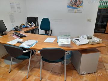 2 armadietti portadocumenti uguali misura 2mt circa lunghezza, 50 cent circa profondità, 1,60 circa altezza, € 100,00 a pezzo. 1 macchina multifunzione con tamburo da cambiare €50,00. 1 bancone con sportelli e scaffale a vista, circa 2mt lunghezza, circa 50cent profondità circa 70 cent alt. €100,00. Scrivania bancone stondato con braccio laterale e cassettiera, circa 2mt lunghezza, circa 60 profondità, circa 70 cm altezza. cassettiera sottostante con tre cassetti e braccio laterale con scaffale aperto sottostante €300,00.