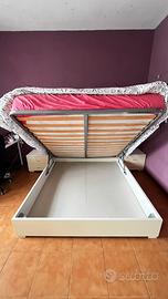 Armadio da riparare alla base, letto matrimoniale con materasso e cassone ribalatabile più 2 comodini, altro letto ikea alla francese a soppalco con materasso, tavolo sala da pranzo ikea apribile per 12 persone più panca e cuscini e 6 sedie più 2 sgabelli da rifoderare, divano Poltrone & Sofà i pelle martellata reclinabile eletricamete, più 5 tende e relativi bastoni!