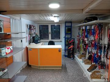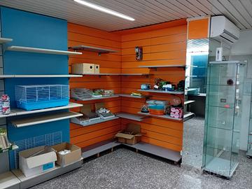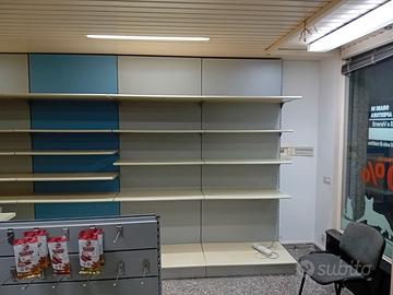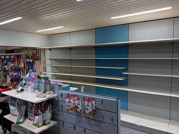 Arredamento tenuto benissimo cedo per immediato realizzo con mensole ganci porta blister 3vetrine illuminate e banco cassa scrivania in coordinato