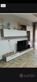 parete attrezzata,più sparecchiatavola stile moderno tavolo legno con 6 sedie cameretta letto a soppalco scale contenitore . Vendesi in blocco o separatamente x dettagli in privato