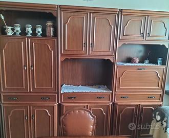 vendo mobili per cambio arredamento in ottime condizioni 2 poltrone in pelle da ripristinare pelle... imbottitura rigida ma non rotte € 50 entrambi....1 mobile sala in 3 moduli €50 ...mobile sala vetrinetta in 2 moduli € 50 ....tavolo e 4 sedie € 80 ritiro a carico dell'acquirente
